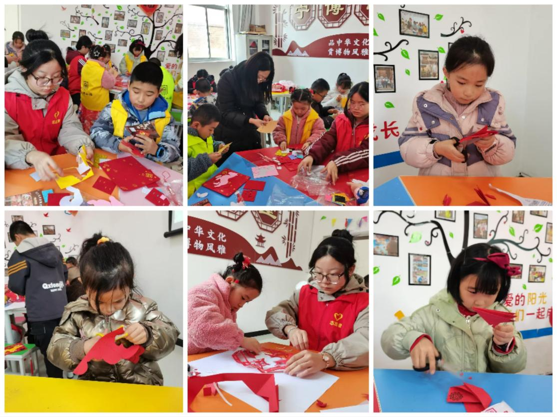 活動中,講解員向孩子們普及了剪紙文化與吉祥紋樣寓意,現(xiàn)場示范折紙、裁剪、鏤空等技法,隨后孩子們與志愿者攜手創(chuàng)作,紅紙翻飛間,福字、生肖、窗花等作品精巧亮相,現(xiàn)場暖意融融、年味十足。