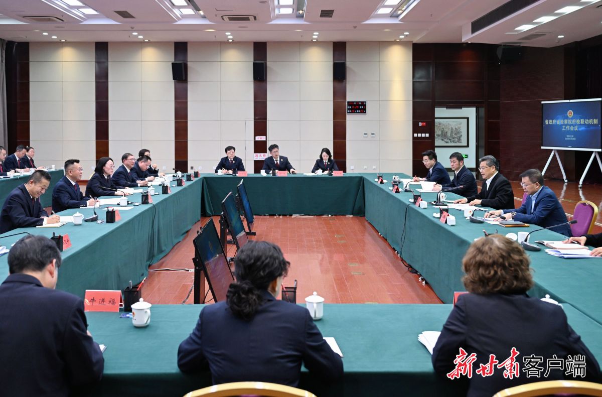 省政府、省檢察院府檢聯(lián)動(dòng)機(jī)制工作會(huì)議2月25日在蘭州召開,省委副書記、省長任振鶴出席并講話。他強(qiáng)調(diào),要深入學(xué)習(xí)貫徹黨的二十屆四中全會(huì)精神,全面落實(shí)習(xí)近平總書記視察甘肅重要講話重要指示精神,堅(jiān)持把體現(xiàn)群眾利益、增進(jìn)人民福祉貫穿府檢聯(lián)動(dòng)工作全過程,強(qiáng)化依法行政和檢察監(jiān)督協(xié)同發(fā)力,一體推進(jìn)法治甘肅、法治政府、法治社會(huì)建設(shè),深度服務(wù)高質(zhì)量發(fā)展和現(xiàn)代化建設(shè)。
